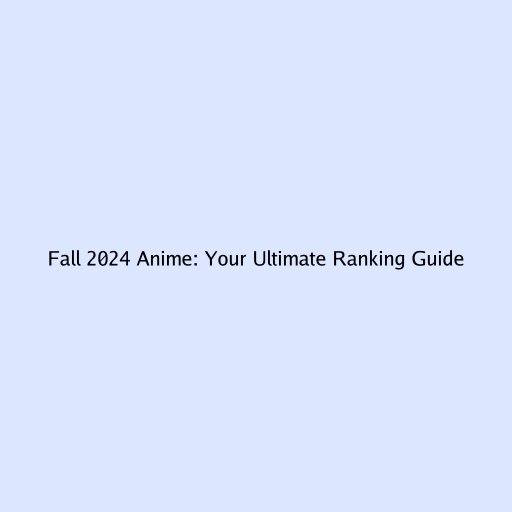 Fall 2024 Anime: Your Ultimate Ranking Guide